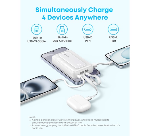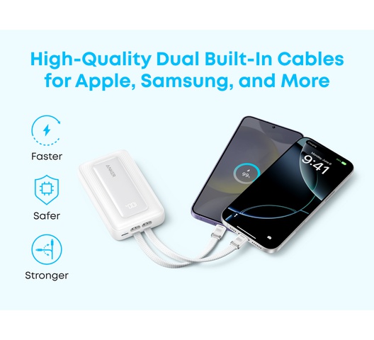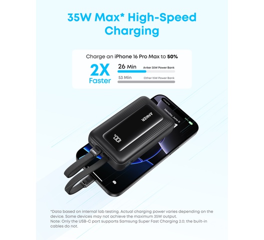 - 30W High-Speed Charging: Enjoy more time on the go without waiting around for your devices to charge with 30W power. Boost an iPhone 15 to 58% or a Samsung S24 to 53% in just 30 minutes.