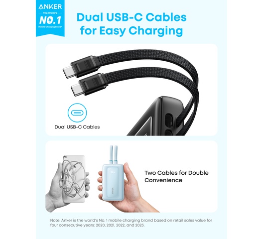 - Dual Cables Built-In Power Bank: Charge effortlessly with dual built-in cables, including an MFi-certified Lightning cable and a USB-C cable. These cables are tested to last over 10,000 bends for long-lasting use.