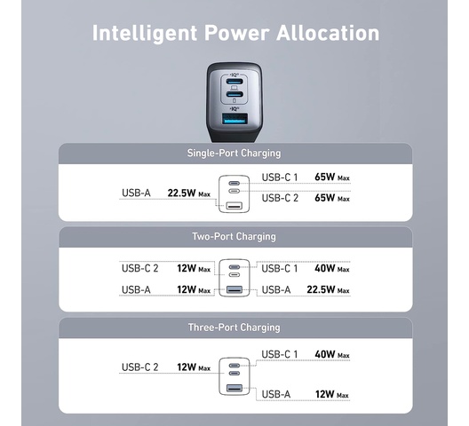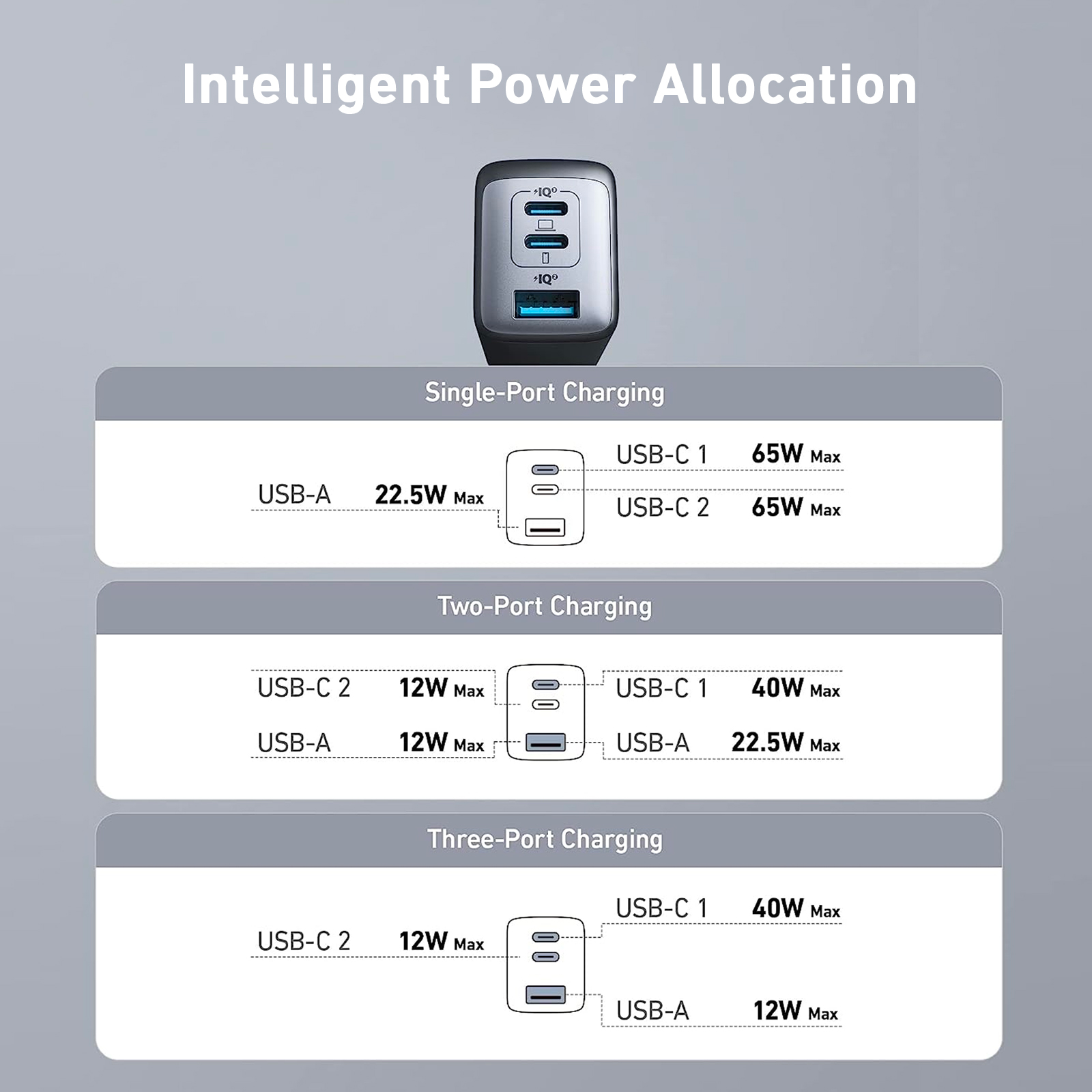 - High-Speed Charging: Delivers up to 65W to a single device—enough to power a 2020 MacBook Pro 13″ at full speed. Efficiently distributes power when charging up to three devices.