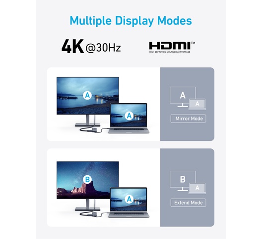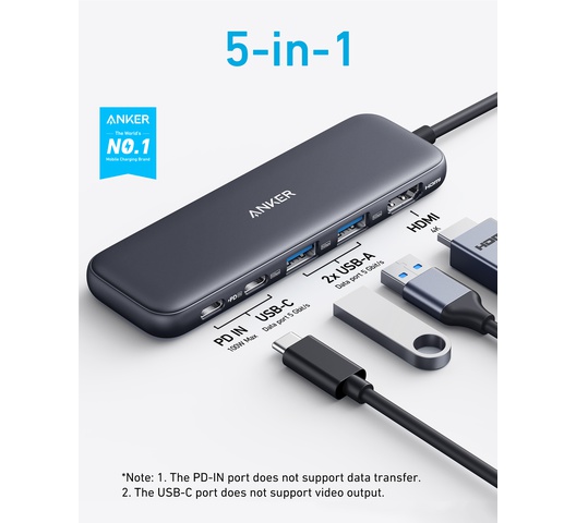 - 5-in-1 Connectivity: Equipped with a 4K HDMI port, a 5 Gbps USB-C data port, two 5 Gbps USB-A ports, and a 100W PD-IN port.
