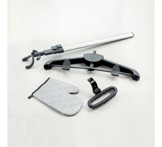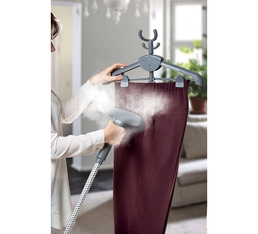 - Integrated Clothes Hanger with Clips – Conveniently holds shirts, trousers, and jackets while steaming.