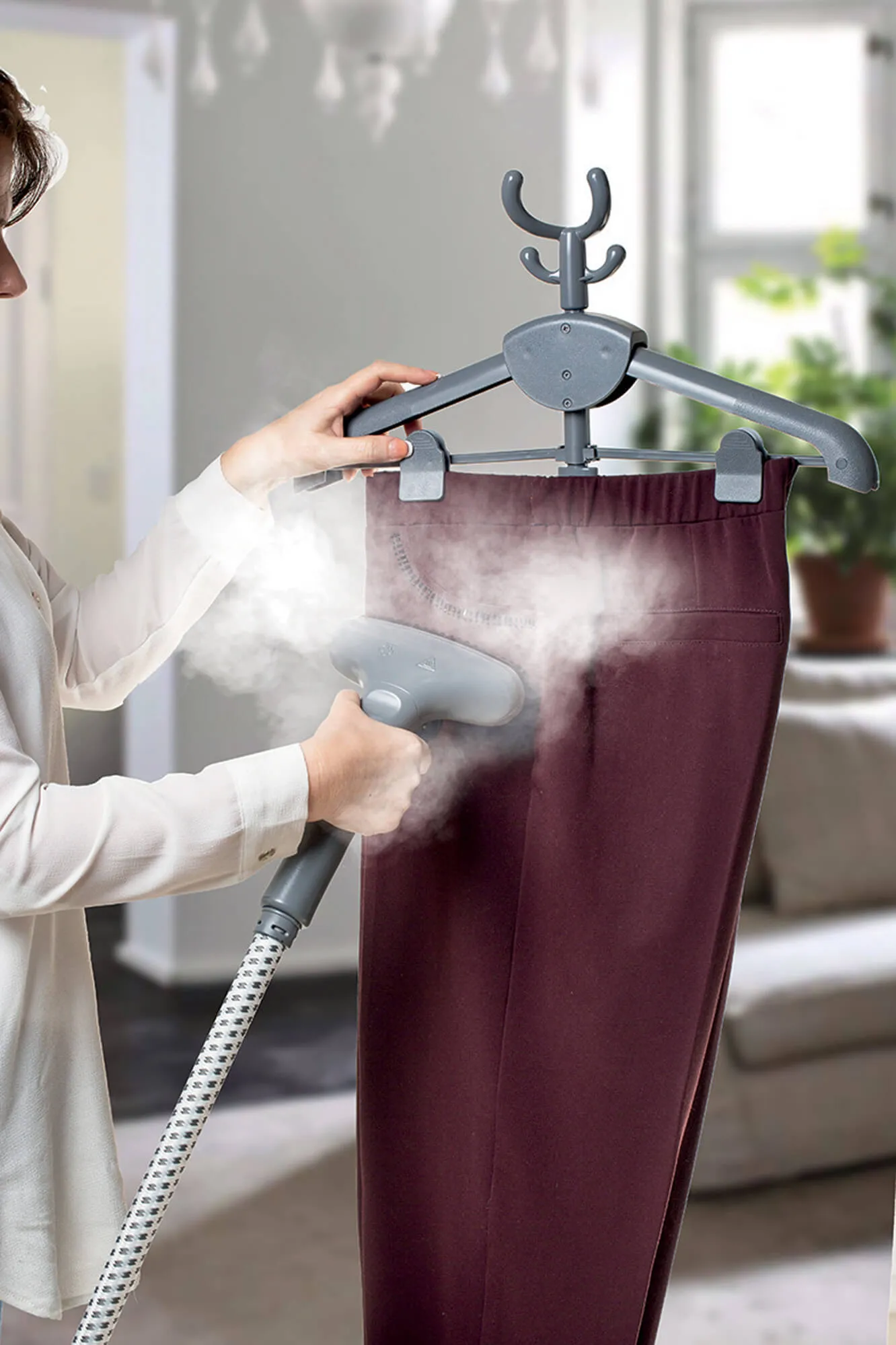 - Vertical Steam for All Fabrics – Perfect for hanging garments, curtains, bed linens, and upholstery.