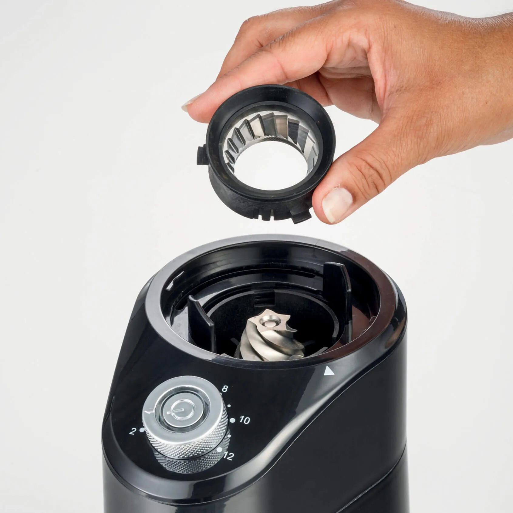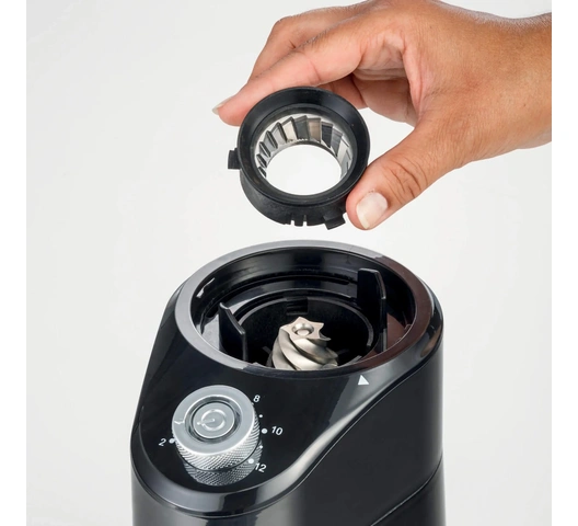 - Removable Stainless Steel Conical Grinders – Guarantee a precise, uniform grind while maintaining the natural taste of the beans.