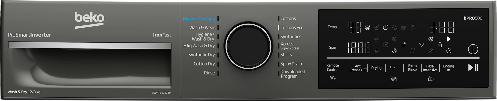 - Steam Function: Beko SteamCure technology - apply steam to stains before washing, softening up dirt and making it easier to remove. It also helps to reduce wrinkles