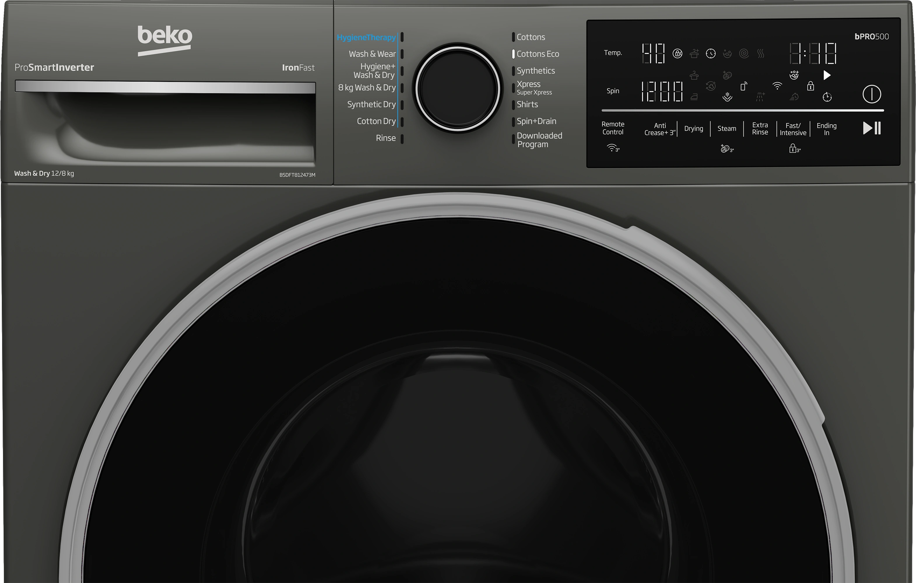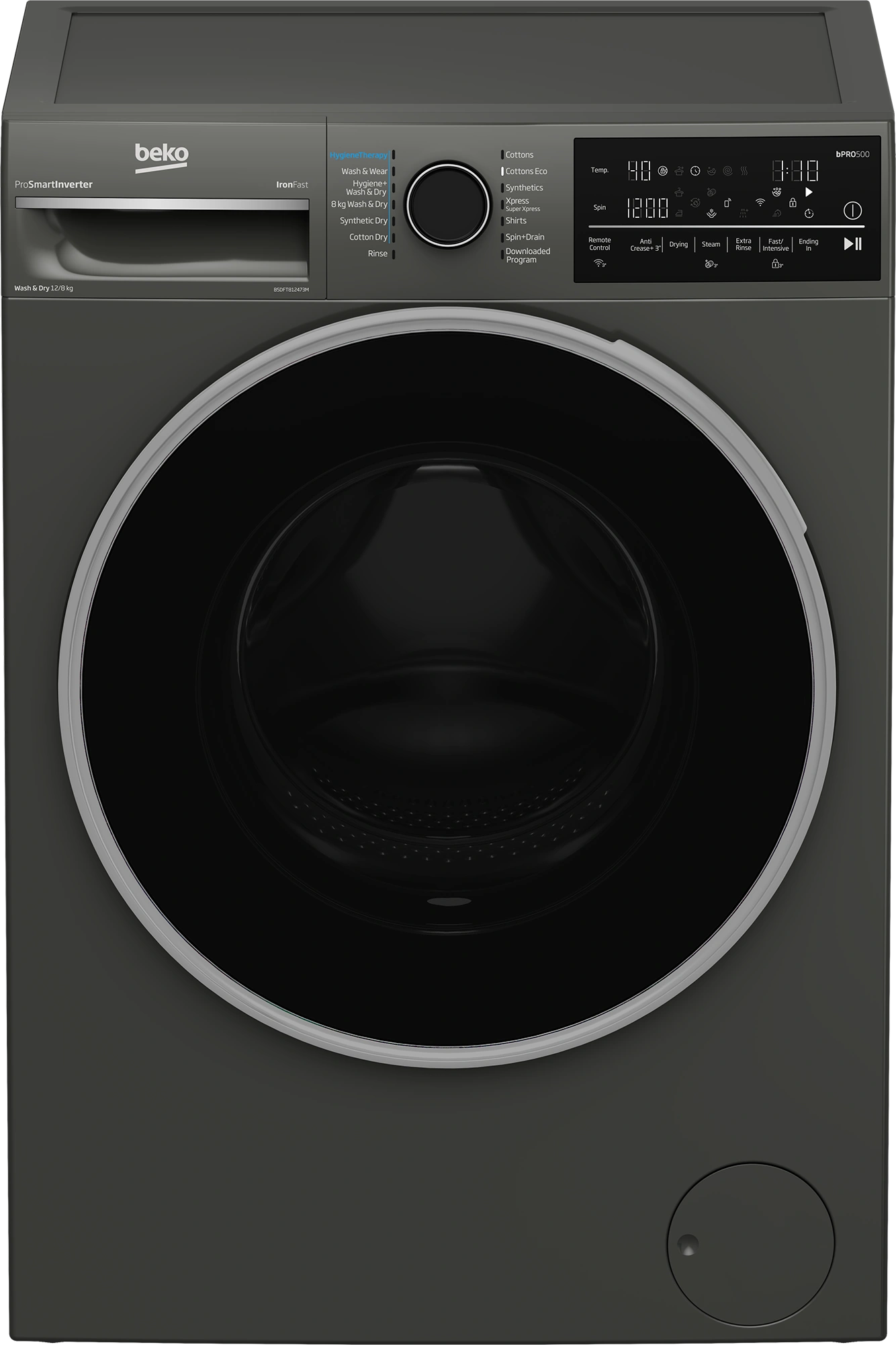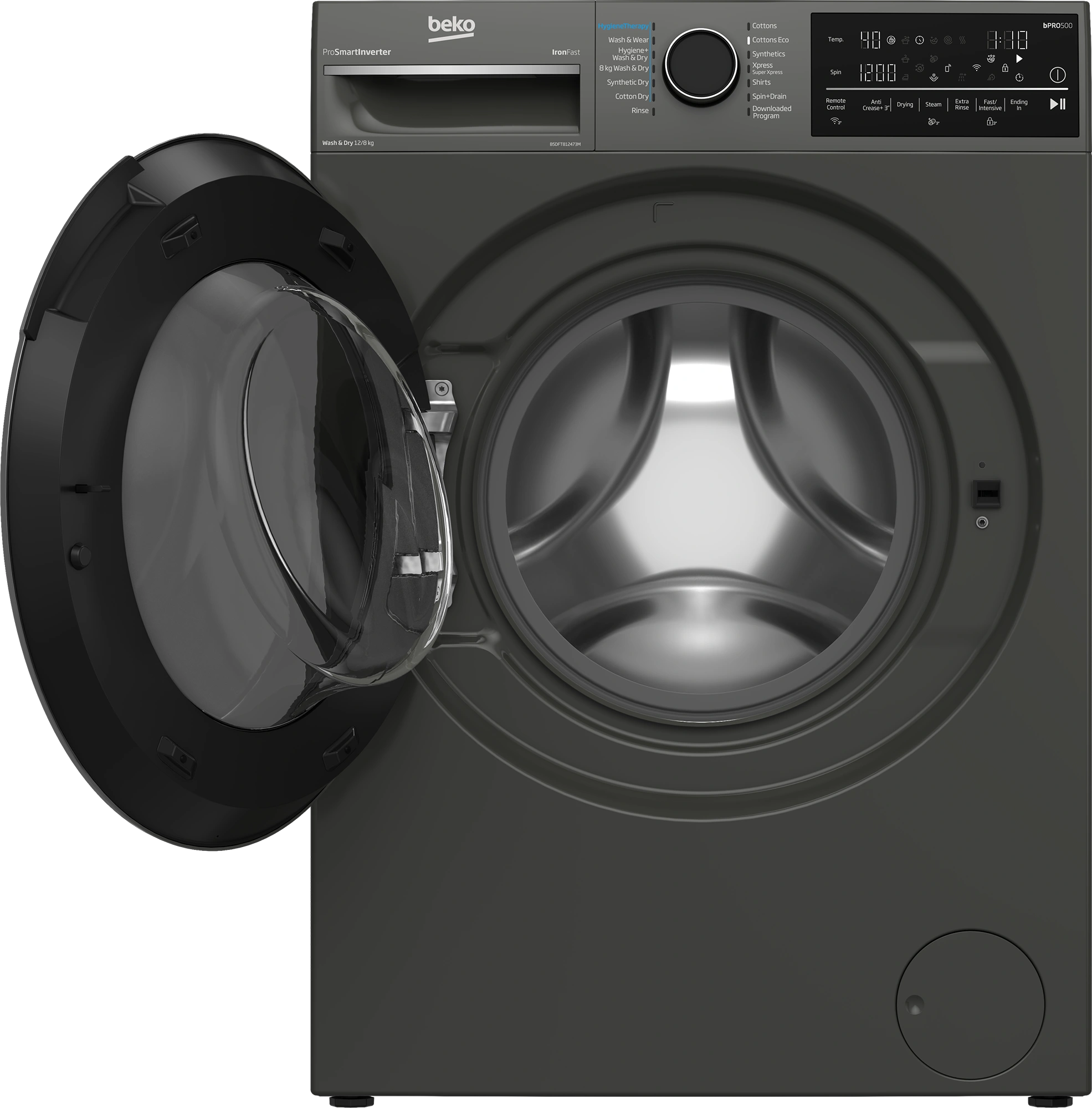 Beko B5DFT812473M Front Load Washer&Dryer - 12/8KG, Black