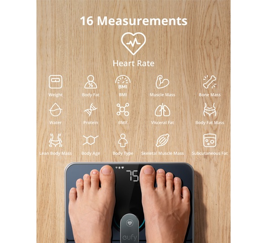 - Smart Syncing: Connect via Wi-Fi or Bluetooth to the EufyLife App and sync with Apple Health, Google Fit, or Fitbit.