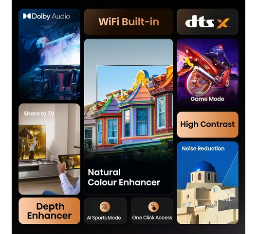 - Connectivity: HDMI, Wifi Built-in, AV IN, USB, Digital Audio Out & LAN