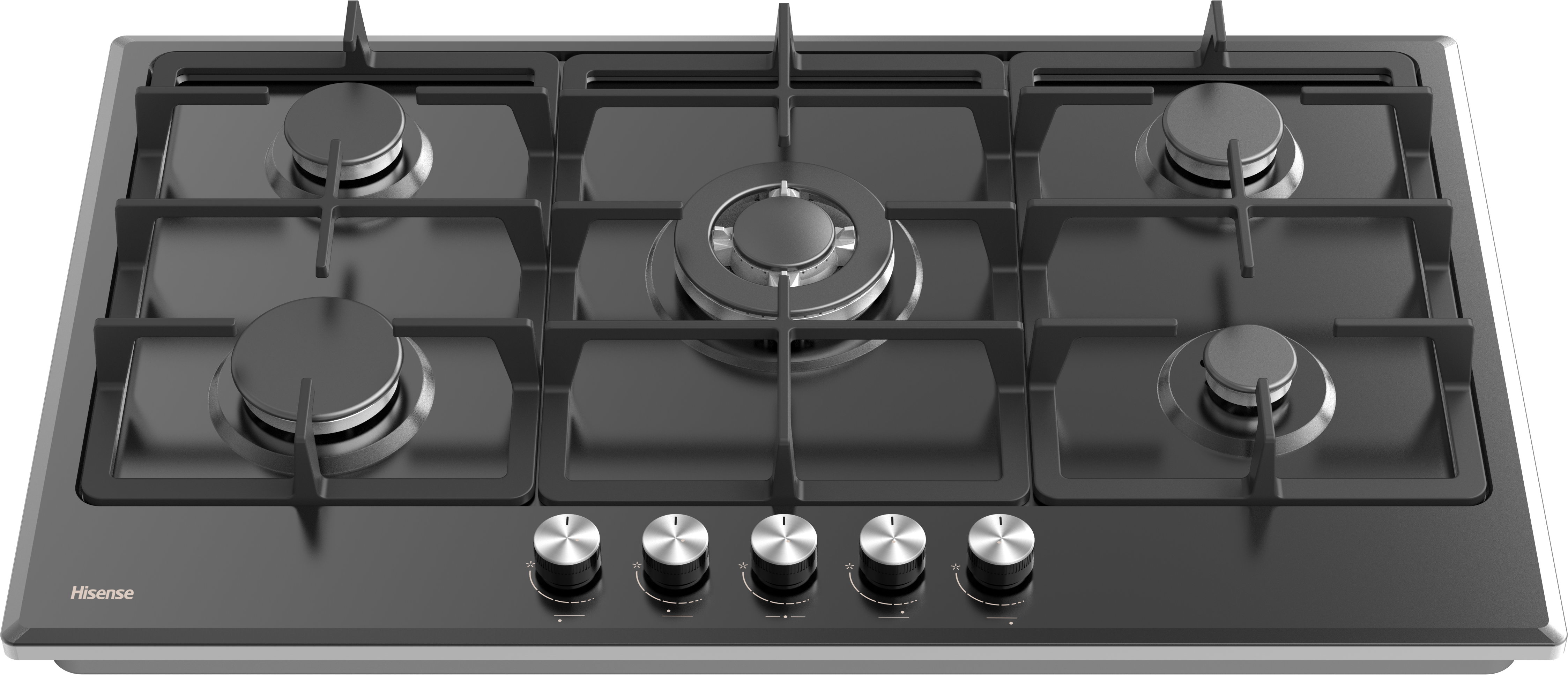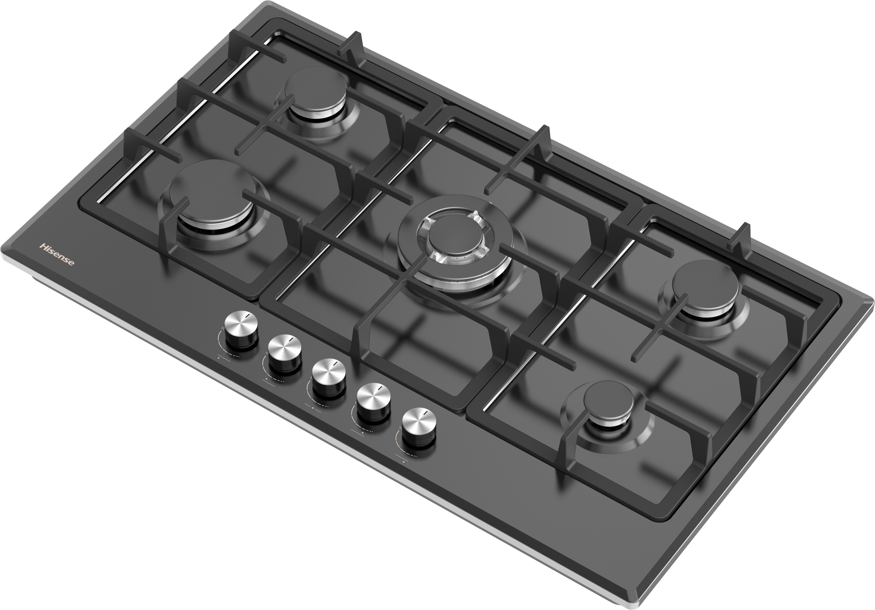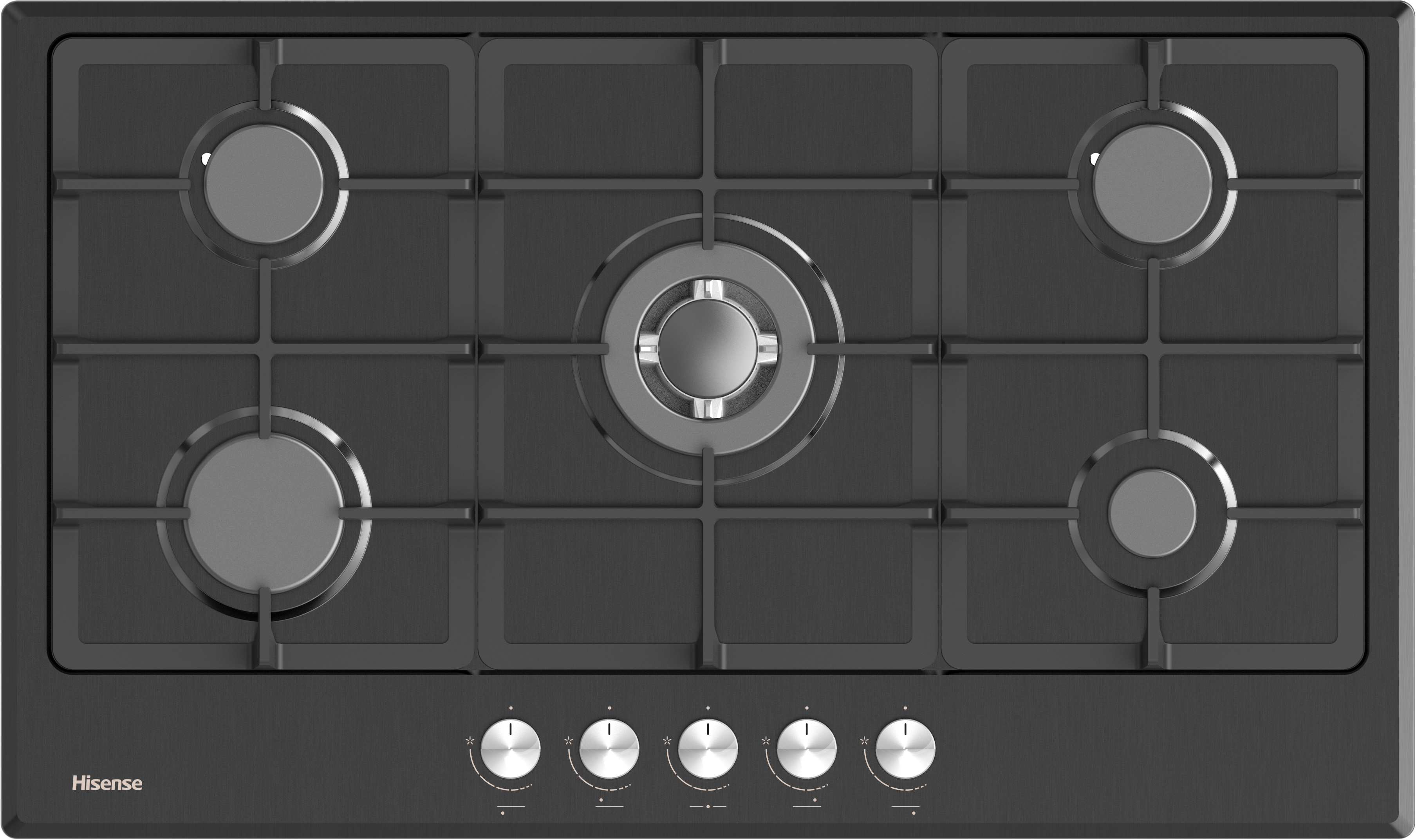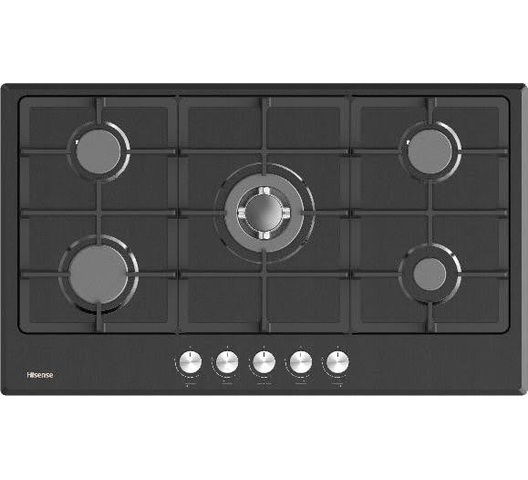 Hisense HGH951BS01 Built In Hob 5 Gas, 90CM - Black, Stainless Steel