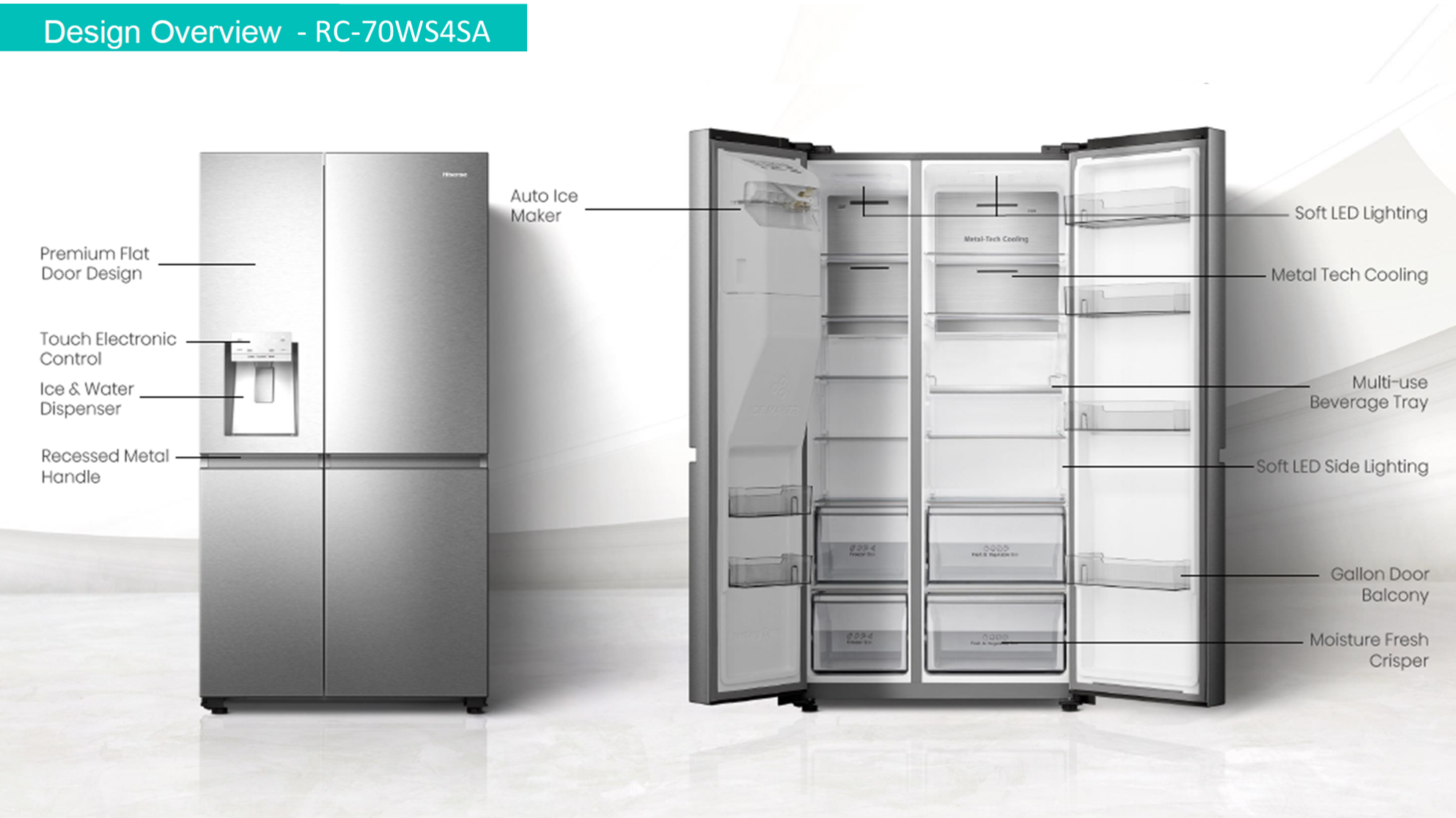 Hisense RC-70WS4SA Side by Side Inverter Fridge - 601L