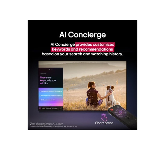 - webOS 25, personalized to you – See it and hear it the way you want with personalized settings powered by AI which learns your preferences. webOS smart features, including AI Search, AI Picture Wizard, Google Cast & Apple AirPlay 2. webOS25 comes with upgrade every year for 5 years to enjoy benefits of latest features & software