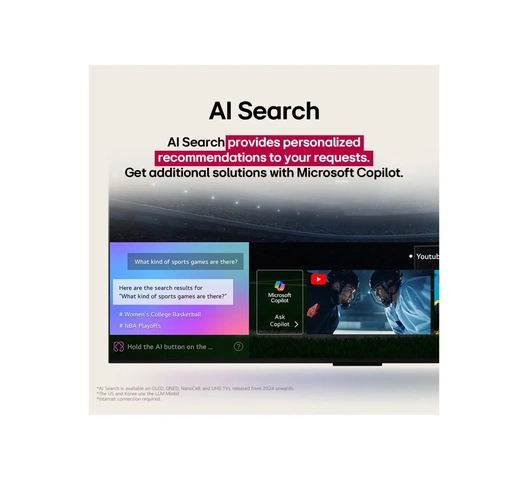 - webOS 25, personalized to you – See it and hear it the way you want with personalized settings powered by AI which learns your preferences. webOS smart features, including AI Search, AI Picture Wizard, Google Cast & Apple AirPlay 2