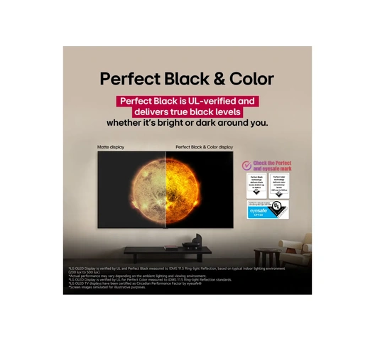 - Perfect Black even in bright or dark spaces - Perfect Black is UL-verified and delivers true black levels to enhance perceived brightness and contrast, whether it's bright or dark around you.