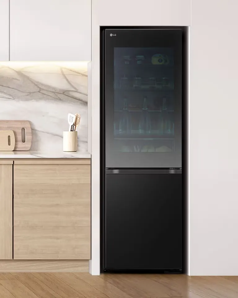 - InstaView Door-in-Door – The sleek glass panel lights up with just two knocks, to view what's inside for quick access, energy saving
