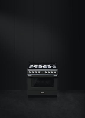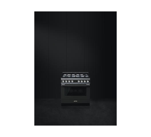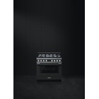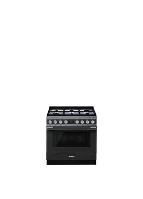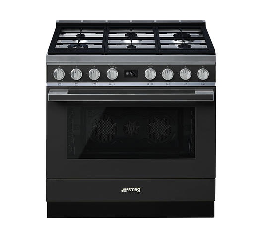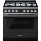 SMEG CPF9GPAN Cooker 6 Gas + Electric Oven Black With Stainless Steel HOB -Thermo Ventilated, Pyrolytic