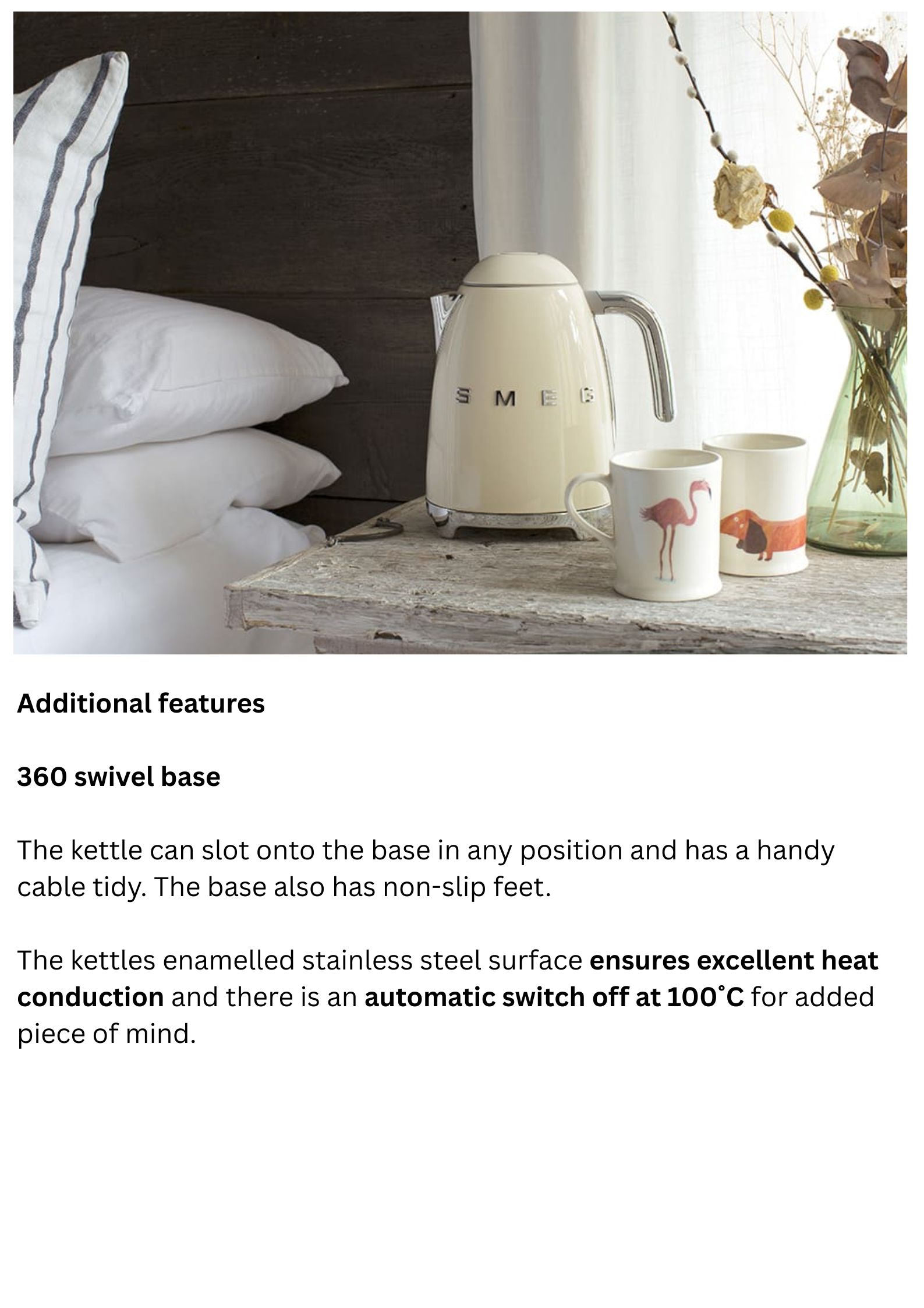 - An everyday essential, reimagined with Smeg’s timeless elegance and modern functionality.
