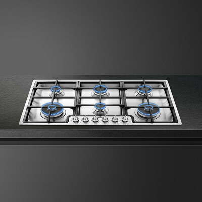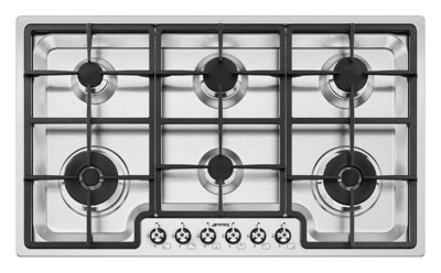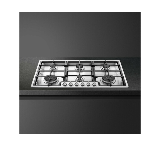 SMEG PGF962 6 Gas Built In HOB, 2 Dual WOKS Stainless Steel - 90CM
