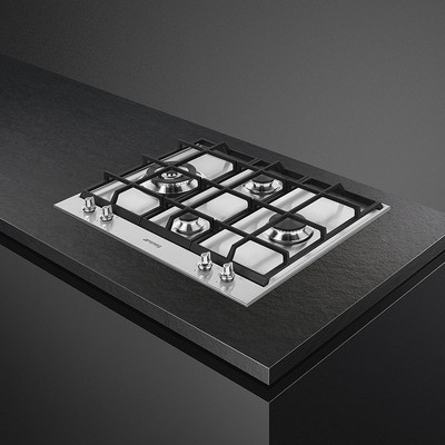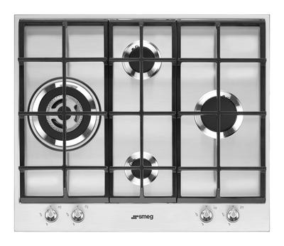 SMEG PX164L 4 Gas Built In HOB WOK, Cast Iron, Stainless Steel - 60CM