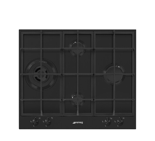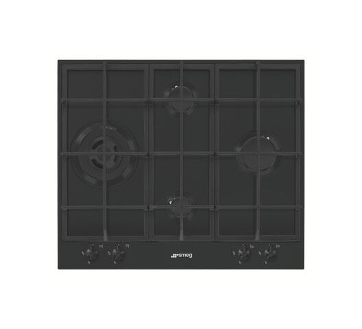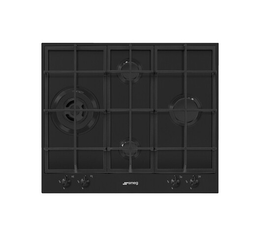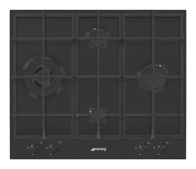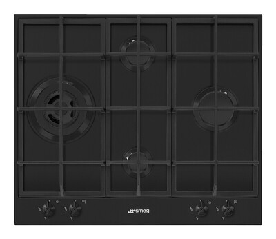 SMEG PX364LMB 4 Gas Built In HOB Black Glass - WOK, Cast Iron