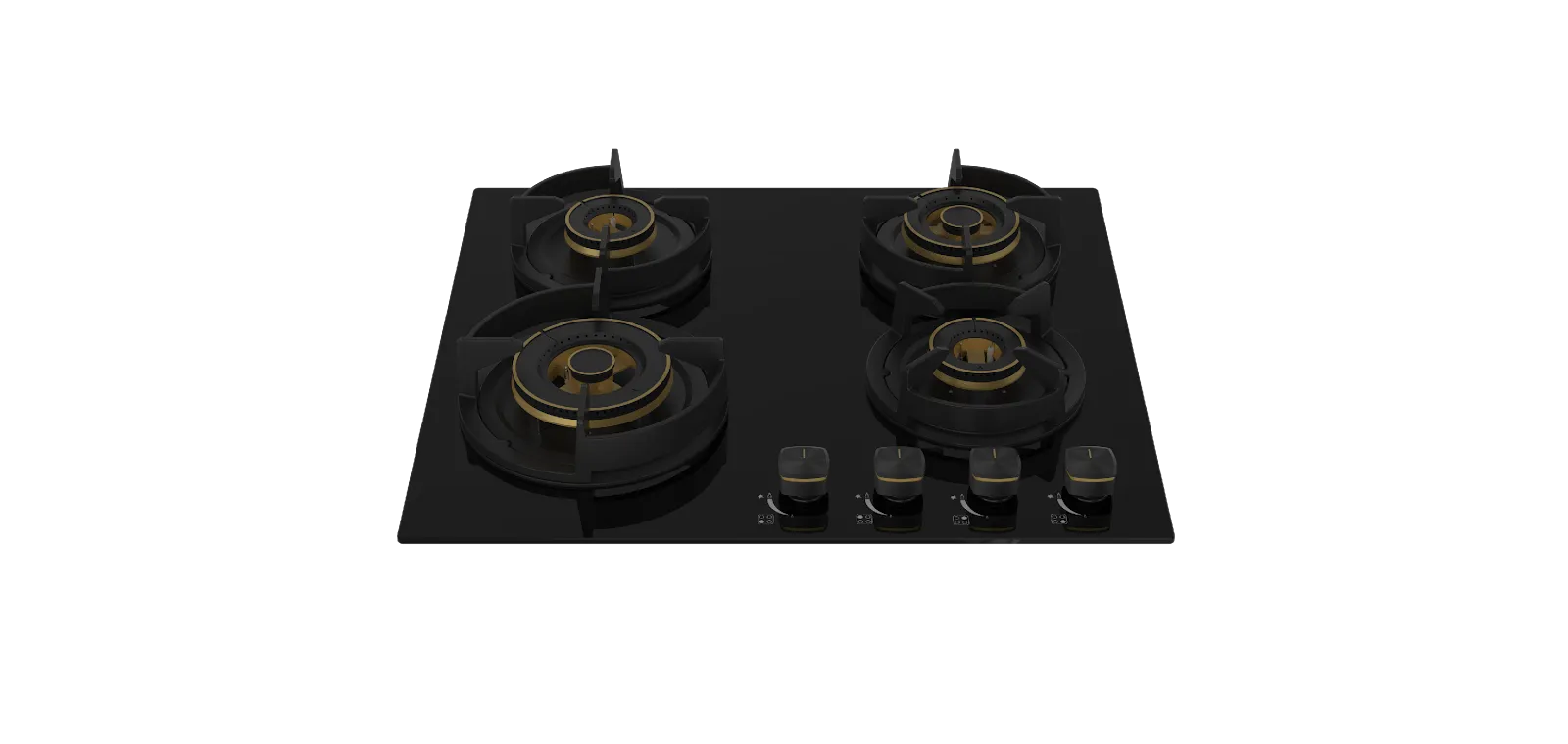 - VON VHB60470WFCK Built In Hob, 4Gas With 2 WOK, 60M Black Glass