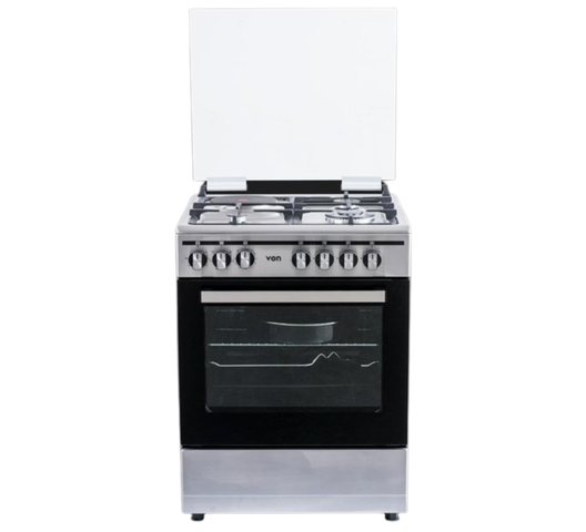 VON VCF663151FSY Freestanding Cooker – 3 Gas + 1 Electric Burners, Thick Enamel Pan Support, Flame Failure Device
