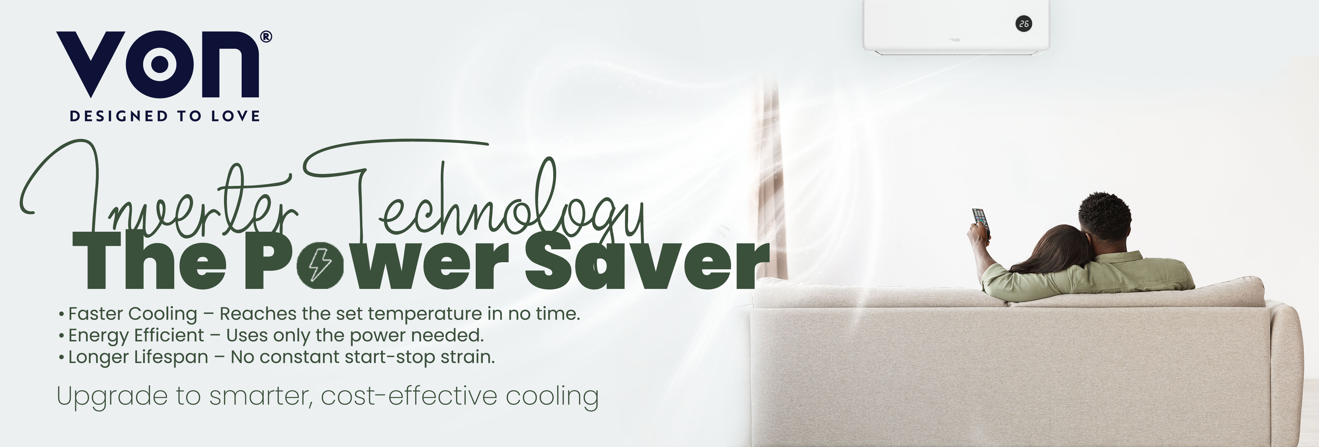 - Inverter technology - Faster cooling- the AC cools the room faster because the compressor starts at a higher speed, quickly reaching the set temperature, then slows down once the room cools.