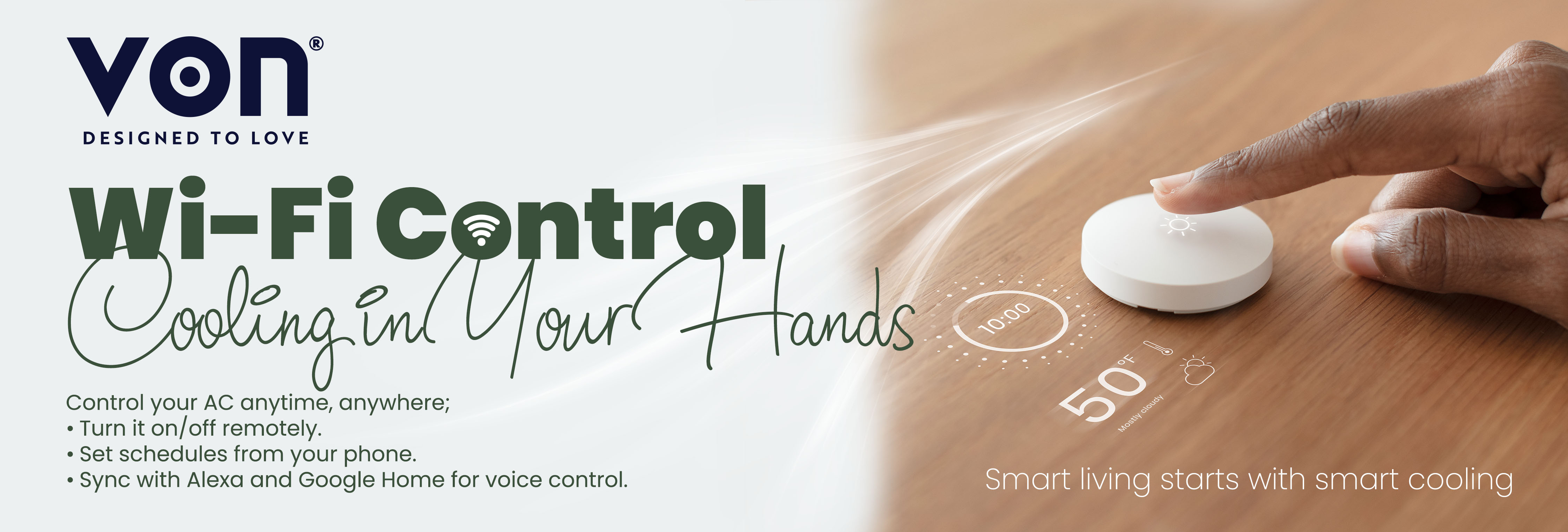 - Wi-Fi Control- The new Von smart AC lets you control and schedule it from your phone, anytime, anywhere. It's also compatible with Amazon Echo and Google Home, so you can control it with voice commands, making life